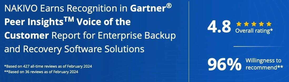 Customers choose NAKIVO Backup & Replication for the advanced feature set, superior performance and highly-rated technical support team.